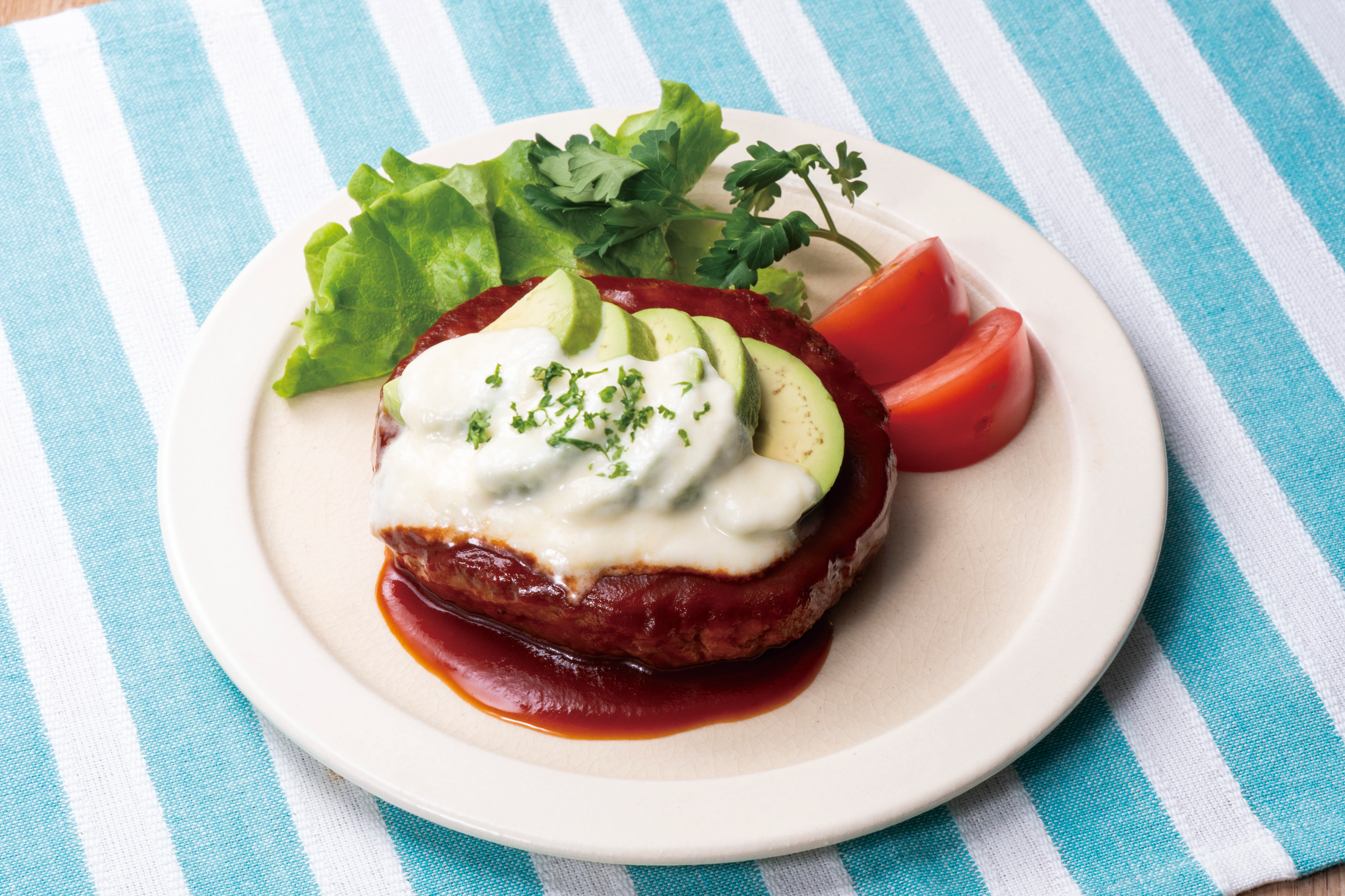 - フライパンに、ハンバーグの焼き色がついていない方を下にして入れて火にかけます。水、ケチャップ、ウスターソースを加えて混ぜ、時々スプーンですくって上にかけ中火で4~5分煮ます。ほどよくソースにとろみがついたら火をとめます。