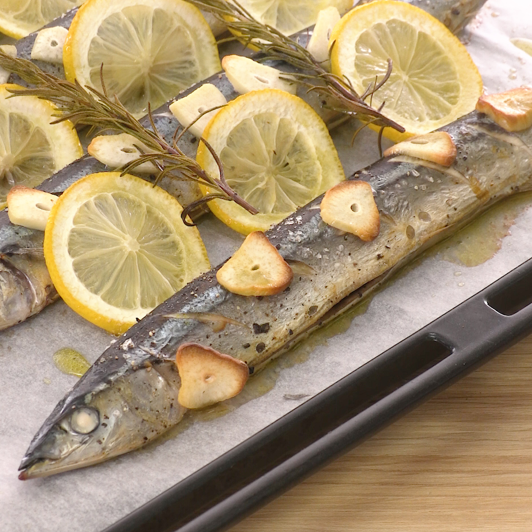 - 200°Cに予熱したオーブンでサンマに火が通るまで13~15分焼く。