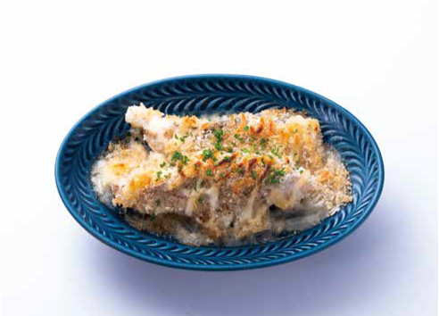 - タラに火が入り、パン粉が色づくまで焼けたら、お好みでドライパセリをかけて完成です。