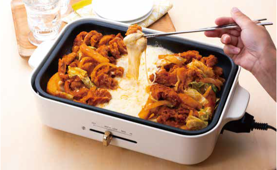 - ホットプレートもしくはフライパンにスペースを空け、チーズを入れて溶かします。
