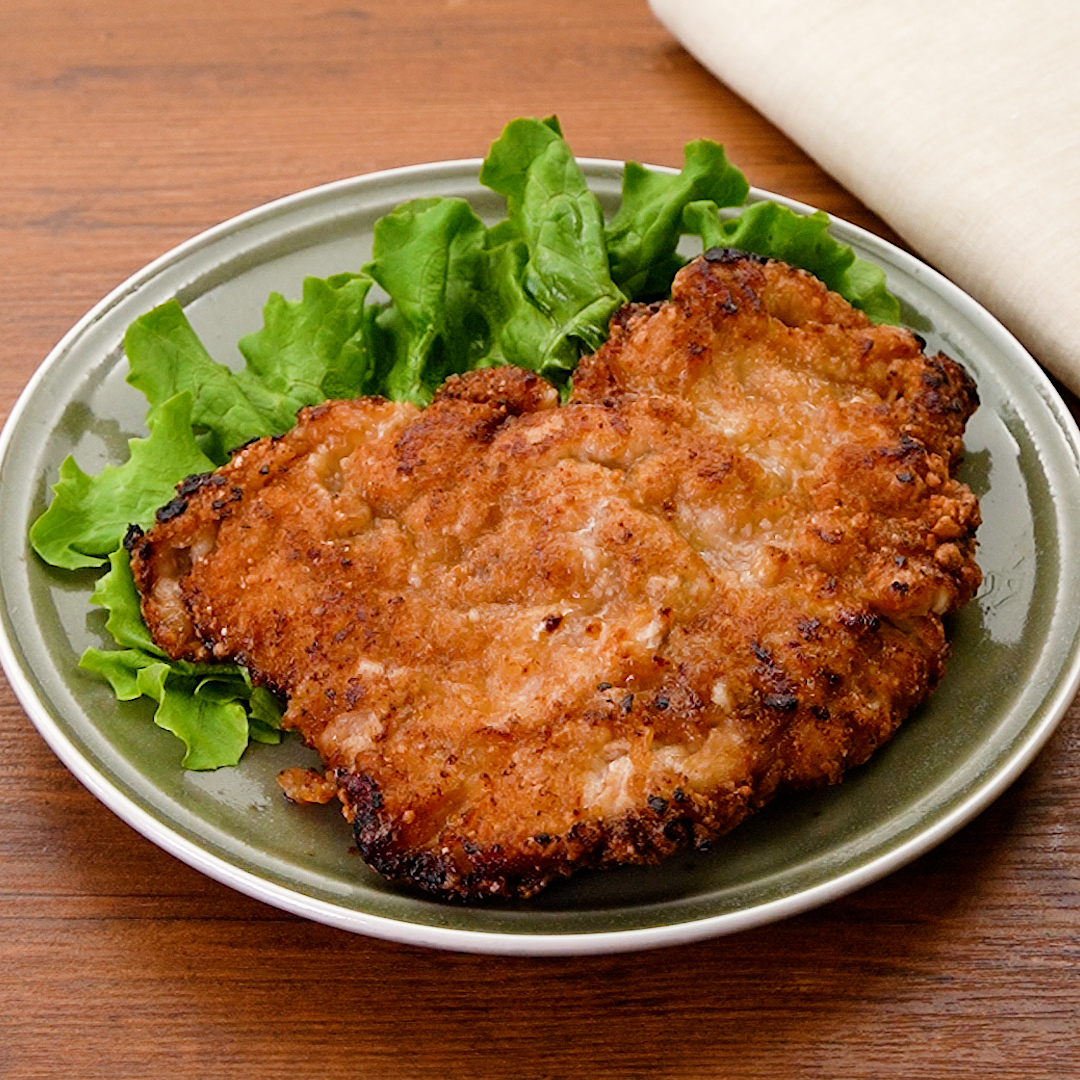 - フライパンの底から2cmくらいまでサラダ油を入れて170℃に熱し、③を入れて3分ほど揚げる。裏返して3~4分ほど肉に火が通るまで揚げる。
