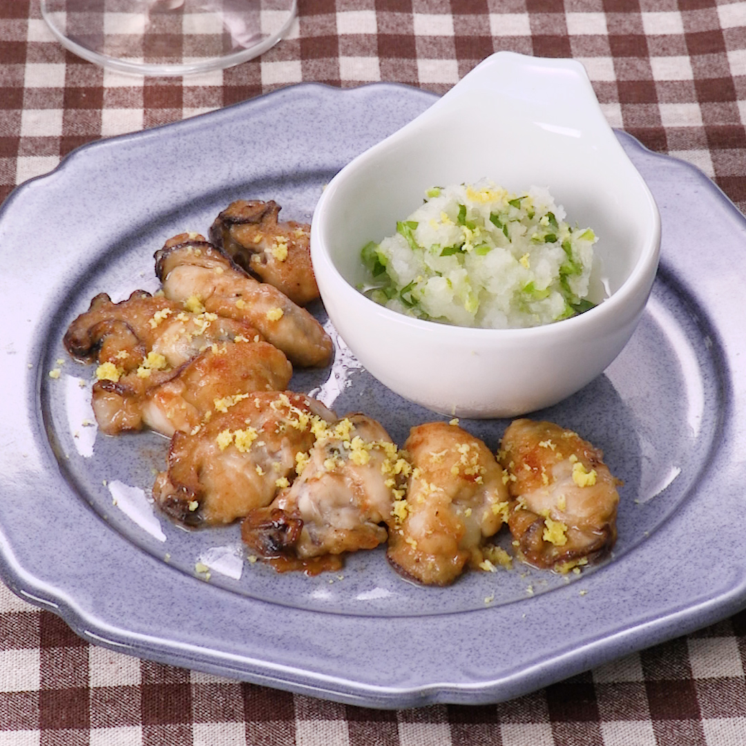 - フライパンにバターを入れて熱し、溶けたら牡蠣を入れて両面に焼き色がついて火が通るまで弱めの中火で焼く。