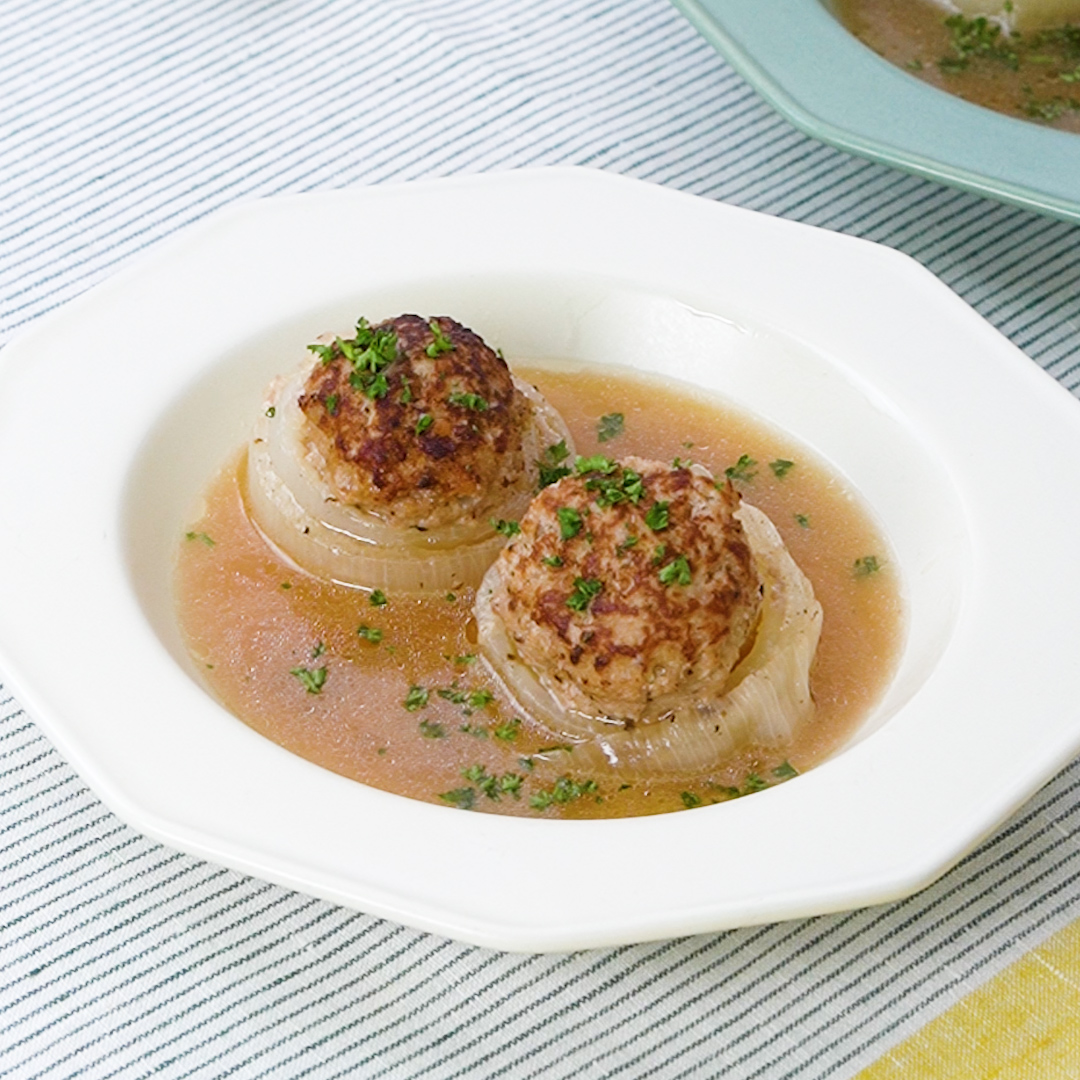 - フライパンにオリーブオイルを入れて中火で熱し、肉だねの面を下にして②を入れて焼き色がつくまで焼く。裏返し、★を加えてふたをして弱火で15分煮る。
